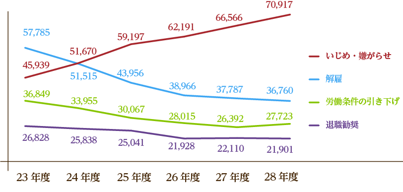 いじめ、嫌がらせが増加傾向にあります。